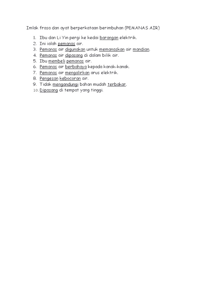 Ejercicio De Tulis Perkataan Dan Frasa Yang Diimlakkan